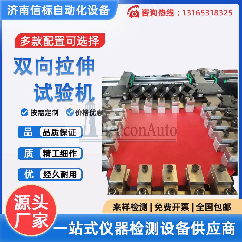 有機(jī)玻璃高溫雙向拉伸試驗(yàn)機(jī)可以完成同步拉伸,及異步拉伸,即XY 分別設(shè)置不同的拉伸速度時(shí),材料的受力變形情況,及力值衰減變化。升級軟件及工裝可以完成1*1變2*2等面積擴(kuò)展拉伸。(軟件及工裝需定制,工裝夾持部分自動伸長。)